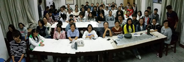 为了庆祝中国共产党第十九次全国代表大会的胜利召开,同时也为备战将于10月28日举行的“喜迎十九大书画创作笔会”活动,10月21日晚上6点至7点半,图书馆在文科馆五楼学生社团活动室举办了书画培训讲座,近60名校松风阁书画社成员和学校书画爱好者参加。