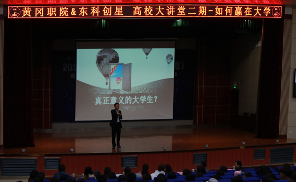 11月1日晚,就业指导处联合东科创星在校学术报告厅举行了第二期高校大讲堂活动。活动邀请了校导网创始人、董事长杨晓锋为现场700余名大一新生带来了一场精彩的“大学生生涯规划与自我管理——如何赢在大学”专题讲座。这场为新生“定制化”的分享让学生热情高涨,赢得了满堂喝彩。校就业指导处处长袁畅,副处长陈国清,黄冈东科创星副总经理肖红亮,就业处全体人员及各位就业联络员聆听了讲座。活动由陈国清主持。