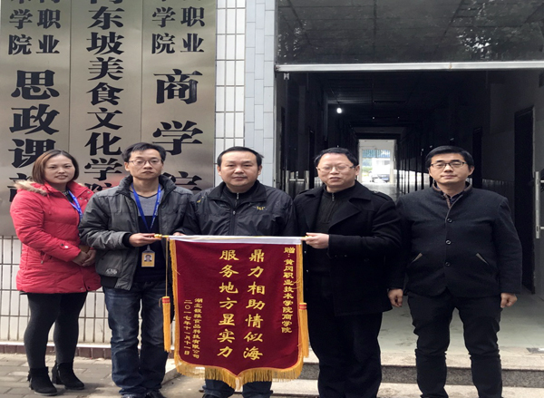 11月28日上午,湖北馥雅食品科技有限公司人力资部经理项华胜及培训部主管杜清一行2人来校赠送锦旗,商学院党总支书记白颢,院长周常青及部分教师代表参加了赠旗仪式。