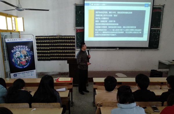 这次金融知识进校园专题讲座,尹相鹏以“树立健康消费观,远离非法校园贷”为主题,从非法校园贷、个人信息保护、个人信用介绍三个方面为学生做了详细的讲解,让学生对非法校园贷有了进一步的认识,使学生学会有效地保护个人信息和保持良好的个人信用,为学生在今后的消费上树立了良好的观念。通过大学生参与校园贷的实际案例,使学生深刻了解到非法校园贷给学生的学习生活造成的危害,从而远离非法校园贷。
