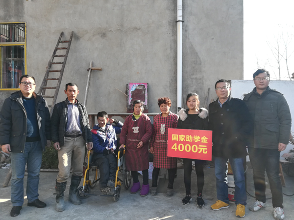 为了认真贯彻国家的“精准扶贫”政策,推进精准扶贫,加大帮扶力度,使国家资助政策这项民生工程惠及家庭经济困难学生,12月22日上午,校学工处副处长吴冬,电子信息学院党总支副书记程朗、辅导员朱子正、周宜松一行4人,来到了团风县团风镇金锣港村,对联网201702班的贫困学生欧阳玉的家庭进行了走访和慰问,给他的家庭送去了学校的关爱和问候。