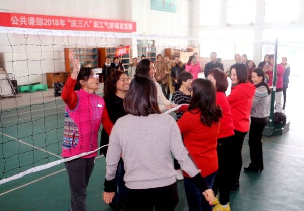 为庆祝2018年“三八”国际妇女劳动节,3月8日中午,公共课部在中区体育馆举行了一场别开生面的女教工气排球友谊赛。校党委委员胡燕,工会常务副主席熊亚芬,公共课部领导及部全体女教工参加了活动。