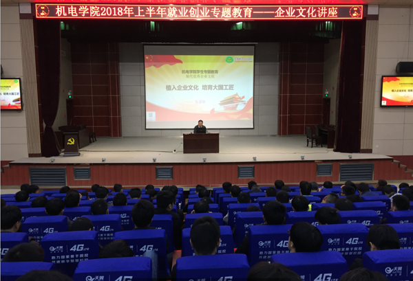 植入优秀企业文化,大力践行工匠精神,着力提升职业素养,培育未来大国工匠,培养创新创业人才,是高职院校义不容辞的责任和义务。机电学院精心策划设计一系列专题教育活动,本次讲座既是一次思想政治教育,又是一次就业创业教育,对学生的求职应聘、就业创业有很好的指导作用。
