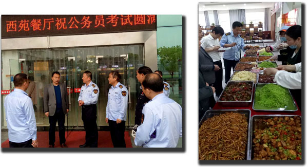 餐饮中心邀请市食药监局对学校餐厅进行了检查,从餐具清洁、伙食质量等环节严格把关,为考试及考务工作人员提供了安全、可口的饭菜和洁雅的就餐环境。