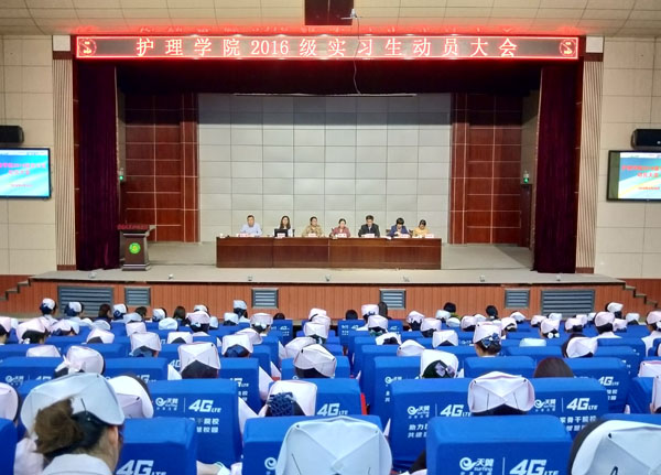 首先,副院长饶凤英宣读了《护理学院2016级学生综合实习方案》,并用真实的临床案例告诫同学们要严谨行事、注意安全。