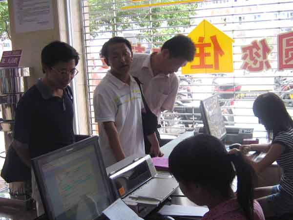 上午10时,熊发涯一行驱车前往农行赤壁分理处、农行东门分理处、农行商城分理处、农行宝塔支行亲切看望正在从事医保办证工作的实习生。熊发涯每到一处都与学生进行亲切交谈,询问他们的工作和生活情况,得知实习学生工作熟练、热情高,他感到非常满意。随后,他们前往市医保局与医保局领导进行座谈,医保局王局长对于我院实习学生给予了高度的评价和赞赏,赞扬他们上手快、态度好、形象好、素质高。据悉,计科系共有20名学生分布在市区各农行从事医保办证工作。