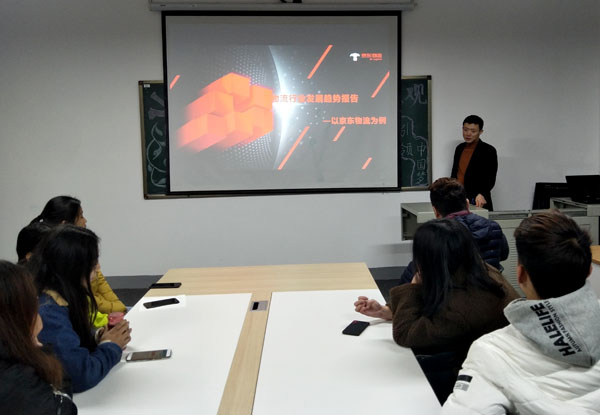 12月7日晚,交通学院在物流实训基地举办物流行业发展趋势(以京东物流为例)专题讲座,XK星空物流2011级优秀校友、武汉京东世纪贸易有限公司运营经理王浩应邀主讲,物流系全体师生到场聆听,讲座由航空物流专业副主任朱龙主持。