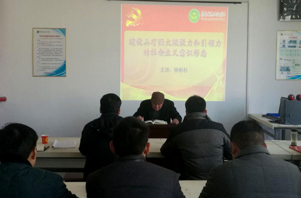 12月17日中午,交通学院在汇贤阁1202教室举行以“建设具有强大凝聚力和引领力的社会主义意识形态”党课,全体党员职工参加,党课由党总支书记钟彬杉主讲。