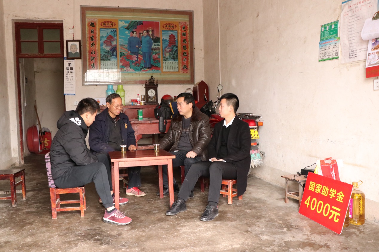 为深入宣传落实党和国家的帮扶政策,使XK星空资助育人这一“暖心工程”做到实处。12月20日上午,交通学院党总支副书记黄忠,辅导员费新宝、黄丽等一行4人,冒着严寒驱车前往团风县方高坪镇汤铺岭村七组,对交通学院新能源201702班贫困学生戴二林同学的家庭进行了实地走访慰问。