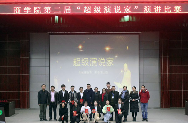 12月20日晚,学校学术报告厅座无虚席,由商学院主办的2018年度“超级演说家”演讲比赛决赛在学术报告厅隆重举行。本次比赛共有来自商学院的10位参赛选手及300多名学生参加。莅临本次比赛现场的领导嘉宾有商学院党总支书记白颢、学工处副处长汤城、教务处副处长叶建亭、商学院党总支副书记刘洋、商学院办公室主任刘喜咏,比赛由校团委副书记崔现强、组织部李霞、商学院肖丽珍、岑理玲、赵娜担任评委。