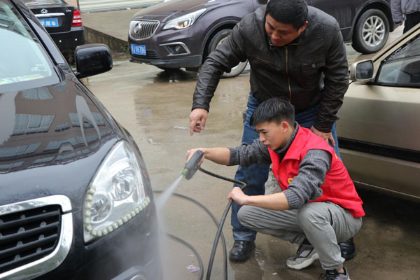 随后,志愿者们进行了爱车保养与清洗活动,涂仲廷现场一对一指导,营造了浓郁的氛围。
