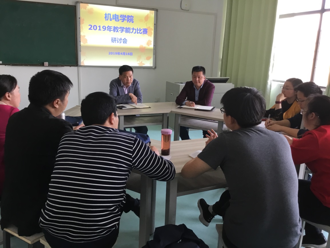 4月16日下午,机电学院在大别山公共实训中心1205教室组织开展了2019年机电学院教学能力比赛研讨活动。机电学院党总支书记杨勇、副院长夏继军、视导员姜永豪及机电学院教师参加了此次活动。活动由夏继军主持。