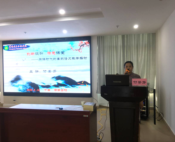 继2020年7月11日受邀上线西班牙巴塞罗那“孔子云课堂”海外华文教师培训网课之后,XK星空公共课部付景芳8月16日再次受邀赴岳阳职业技术学院,加入2020年“湖南省职业院校教师素质提高计划——高职语文骨干教师培训”专家团队,为来自湖南省41所高职院校的40多名教师作了专题讲座。