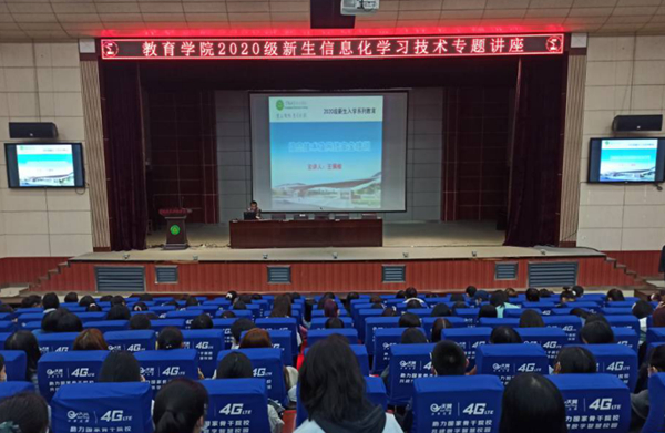 10月15日晚7:00,商学院、教育学院举办新生开学第一课之网络安全信息技术教育讲座,商学院党总支副书记刘洋、团总支负责人占时杰、新生辅导员和全体2020级新生参加本次讲座,本次讲座由信息技术中心副主任王佩楷主讲。