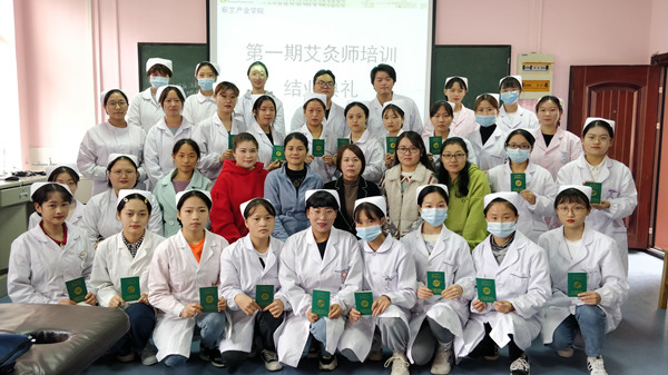 2020年11月1日,蕲艾产业学院第一期艾灸师培训班顺利结业,出席本次结业典礼的有蕲艾产业学院副院长陈小英、办公室主任夏瑾燕、任课教师及全体学员。