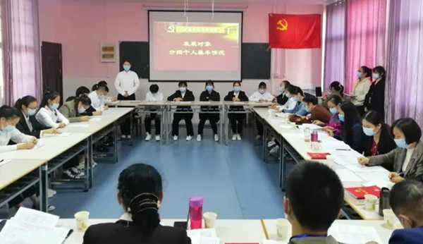 11月13日上午,护理学院学工党支部在崇贤阁102室召开2020年下半年新党员发展大会,讨论叶峰等19名同学的发展。出席本次会议的有护理学院党总支书记王莹华、党总支副书记张朋生,学工支部全体党员和19名发展对象,会议由护理学院学工党支部书记郑伟主持。
