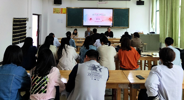 4月22日下午1点。医学部在齐贤阁201教室召开了教风建设推进会议。大会由医学部副主任江玲娜主持,医学部直属党支部书记兼常务副主任徐火军、副主任涂开峰及医学部全体专兼职教师参加了本次会议。