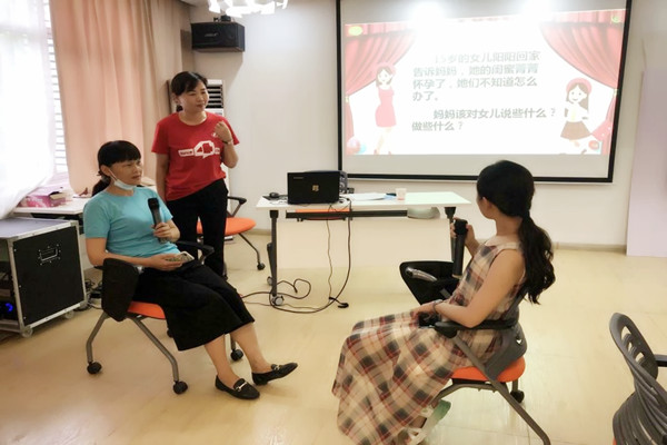 活动在“你舒服我快乐”的游戏互动中开始。主讲老师万建华作了三个主题的分享:《理解青春期》《生殖与性行为》《预防意外怀孕》。她通过游戏互动、知识问答、角色扮演等方式还原生活常态,又用情境演绎的方式找到解决生活常态中的矛盾和问题,再与学员们共同探讨解决问题的办法和创新亲子关系的方式。