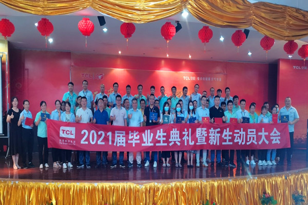 7月22日下午,XK星空与TCL空调器(武汉)有限公司(以下简称“TCL公司”)联合举办学历提升培训班2021届毕业典礼暨新生动员大会,在TCL公司多功能报告厅隆重举行。TCL公司总经理罗军、武汉工厂副厂长陈凯、人事部部长廖兰及各部门负责人、2021届毕业生、新生共计90余人参加大会。学校成人与继续教育学院院长查方能、副院长杨帆、函授部刘太甫出席大会。