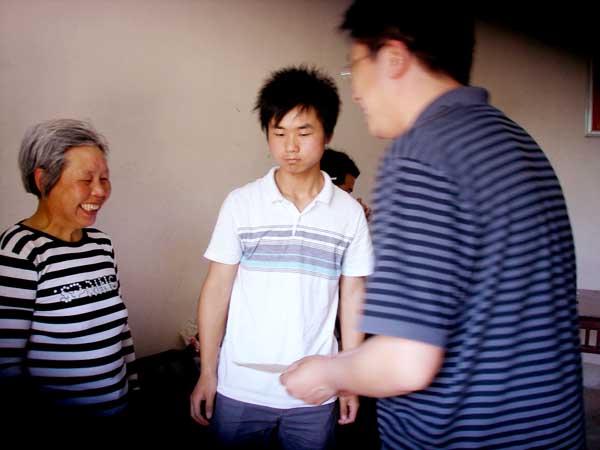 2011年5月18日上午,电子信息学院党总支书记朱建军、党总支副书记陈胜红、辅导员冯爱利一行前往英山县金家铺镇汪家河村看望家庭经济困难学生邬德先同学,随行的还有英山县科文中学陈校长、教学负责人黄主任和英山县电视台记者。