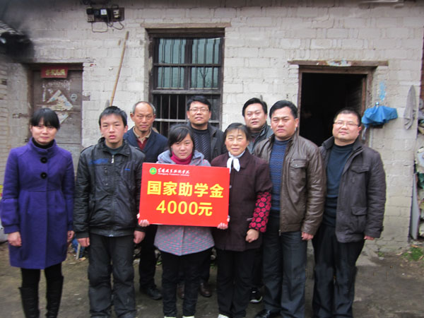 2012年3月3日上午,医学院副院长冯军、校学工处副处长焦爱新、医学院办公室主任沈爱平、学生科科长彭红兵、医学院国家助学金专员彭继红及辅导员饶致毓一行冒着春寒历行3个小时的颠簸,到达罗田县胜利镇毛家坳村朱淑华同学家,为她送去了国家助学金及慰问金。