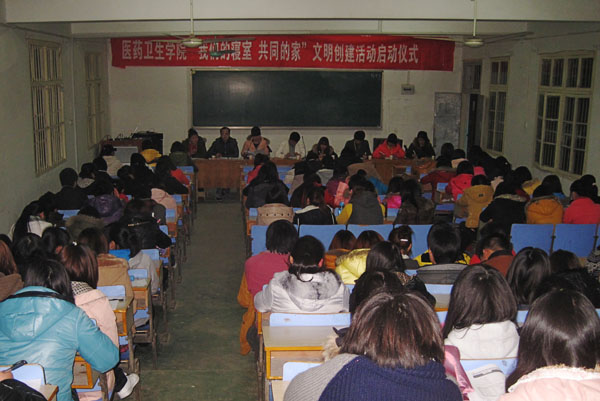 2012年3月6日18:30,医药卫生学院在东区济贤阁401教室隆重举行以“我的寝室,共同的家”为主题的文明创建活动启动仪式。医药卫生学院学生科老师朱卫东、闫林军,校学生会劳生部成员、校广播台记者,医药卫生学院团总支、学生会全体成员及各班劳生委员参加了此次活动。