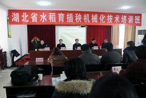 此次会议由湖北省农机局主办,由浠水县政府和黄冈市农机局承办。省农业厅党组成员、省农机局局长吴庆峰,副局长周立明,黄冈市农机局局长周丹,浠水县委副书记周丽娅、副县长叶又明等领导同志出席会议并分别在会上作了重要讲话。培训会上,与会代表听取了有关专家关于推广水稻育插秧机技术的经验介绍,并观摩了水稻生产机械化作业演示。省农机学会会员、交通学院高银桥教授在会上进行了水稻插秧机操作技术培训演示。