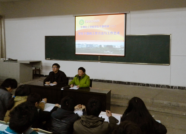 3月16日晚,生物化工学院在敬贤阁101多媒体教室举行本学期第二次学生干部培训。本次培训的内容是学生干部的工作方法与工作艺术。由生物化工学院党总支副书记程喜荣主讲。团总支副书记朱元锋主持。