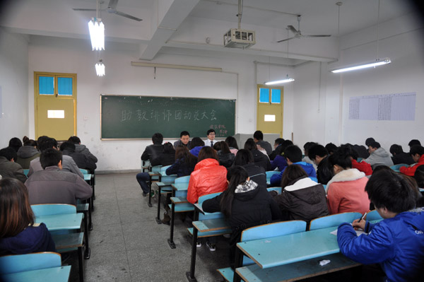 为了有效、迅速地提升学院整体学习氛围,建筑学院开展助教讲师团活动。2012年3月24日上午9:00,建筑学院在育贤阁117教室举办了学生助教讲师团动员大会,2010、2011级各班学习委员和建筑学院团总支学生会学习部全体学生干部参加本次大会;会议由团总支副书记田涛主持,党总支副书记黄正东出席会议并作了动员讲话。