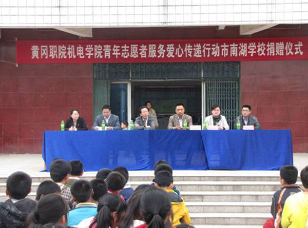 XK星空机电学院团总支青年志愿者于2012年4月18日下午4:00在南湖学校教学楼前举行爱心图书捐赠活动。出席此次活动的有学工处副处长徐火军、科长吕晓霞、机电学院团总支副书记李孝智,南湖学校校长李保全、副校长陈壁和徐玉梅、政教处主任徐建英,XK星空机电学院青年志愿者代表、南湖学校全体师生。捐赠仪式由徐建英主持。