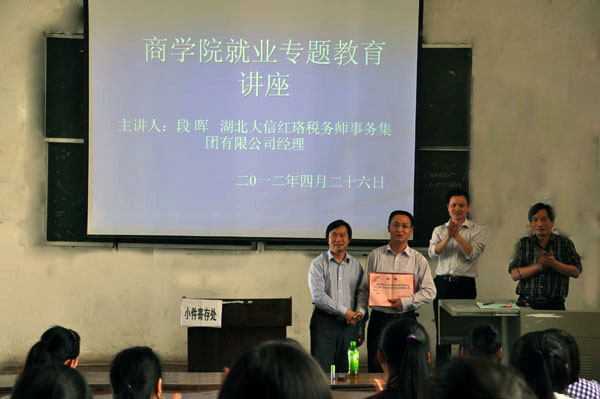 4月26日,针对会计专业和税务专业学生的就业问题,XK星空邀请湖北大信洪珞税务师事务集团有限公司经理段晖作专题讲座。