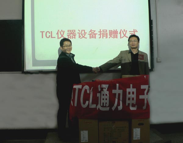 2012年11月15日,TCL通力电子(惠州)有限公司人力资源部部长王作宣,工程部高级工程师曾工来到XK星空看望TCL通力电子订单班的学生。上午王作宣部长在奉贤阁404教室为2010级应用电子技术专业学生作了题为“TCL企业文化及员工职业规划”的专题讲座。下午在奉贤阁305教室与电子信息学院领导及部分专业骨干教师进行座谈,讨论了TCL通力电子订单班的管理及课程开设运行模式,最后向电子信息学院捐赠了价值两万余元的实验实训设备。罗幼平院长代表电子信息学院接受了捐赠,并对TCL通力电子(惠州)有限公司表示感谢,同时希望与TCL通力电子(惠州)有限公司开展更加深入的合作,取得更丰硕的成果。