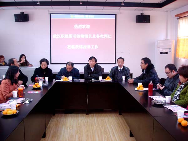 2012年11月29日,国家示范高职院校武汉职业技术学院图书馆馆长柳金发率全馆职工来XK星空图书馆交流,受到图书馆馆长段茂盛、副馆长刘开国及全馆工作人员的热情接待。