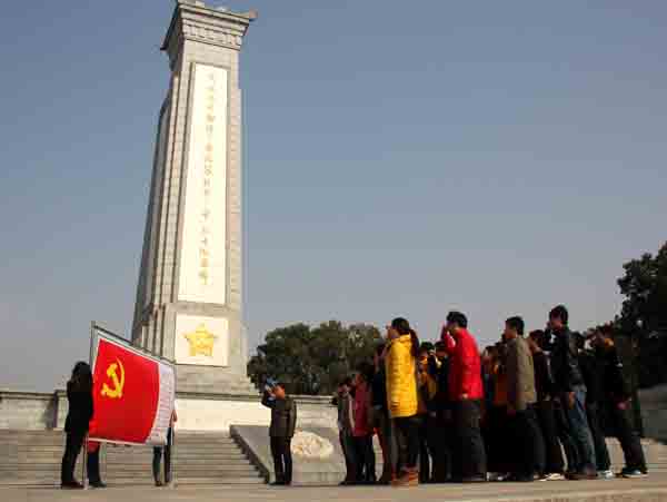 12•9前夕,为缅怀先烈,贯彻落实十八大精神,2012年12月8日,在建筑学院党总支的组织与安排下,建筑学院40 名中共党员和中共预备党员怀着对革命先辈的无限敬仰,带着对革命精神的无比崇尚,组成“红色之旅”队伍,踏上了红色旅途,来到被誉为中国第一将军县的红安县,接受革命传统教育,感受红色的精神洗礼。