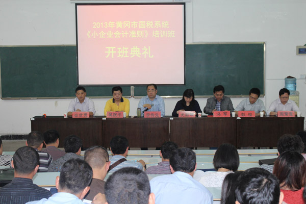 5月8日上午,黄冈市国税系统2013年第二期小企业会计培训班在XK星空敬贤阁101室隆重举行开班仪式。黄冈市国税局党组成员李传先总经济师、教育科科长尤淑琴、副科长彭俊,黄冈职院成教学院书记冯军、院长张世勇、商学院书记吴祝平、副院长周常青以及来自黄冈各县市参加培训的50名学员参加开班典礼。吴祝平书记首先代表职院发表了热情洋溢的欢迎词,并简要介绍了XK星空的基本情况。会议由张世勇院长主持。