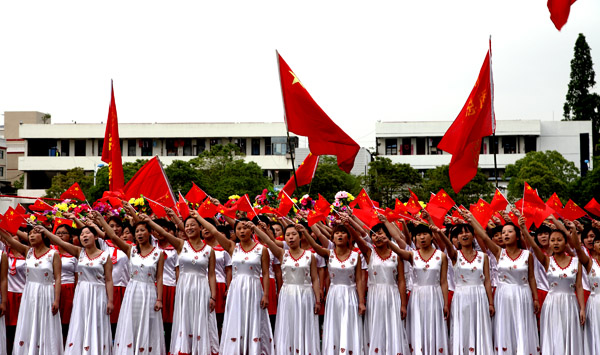 5月10日下午,XK星空中区操场彩旗飘飘,歌声嘹亮。一场以“回味红色经典 传承革命精神”为主题的大型歌咏比赛拉开了帷幕。校党委书记张鹤桥、党委委员郑柏松、学校从事大学生政治工作的有关领导及3000余名学生观众一道观看了比赛。