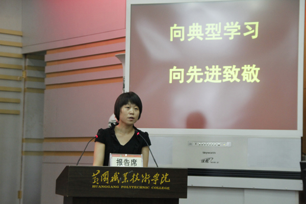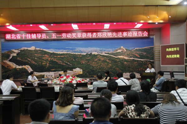 报告会从不同角度介绍了郑欣艳老师的先进事迹。作为湖北省“十佳辅导员”、“五一劳动奖获得者”,郑欣艳老师介绍了多年来学生工作中的所为、所获、所思;作为分管领导,医学院副院长沈爱平介绍了他心目中的郑欣艳;作为学生,建筑学院造价200903班赵求名介绍了学生心目中的辅导员老师;作为女儿,罗莎寒小朋友介绍了她心目中的妈妈。整个报告会,令人感动。郑欣艳老师作为一名专职辅导员,时时保持敬业精神,处处关心学生学习生活,将“两情”管理真正落到实处,以校为家,以生为亲,在平凡的工作岗位上作出了不平凡的成绩。