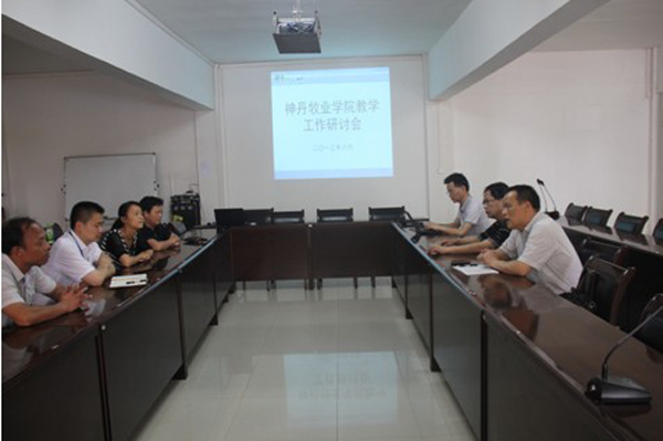 大赛前,XK星空教务处副处长方玮、生物化工学院副院长王银林、副书记程喜荣等领导与神丹公司经理田传武、场长黄运长、主管刘珊举行了神丹牧业学院工作研讨会,对神丹牧业学院的运行体制、机制进行了研讨。