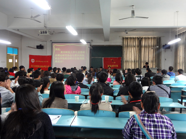 2013年10月27日上午XK星空大学生思想政治理论研究协会(以下简称黄冈职院政研会)在育贤阁104教室成功举办黄冈职院政研会与黄冈师范学院政治研讨会第三届交流会。出席此次会议的嘉宾有:黄冈师范学院政法学院辅导员项彦超老师、黄冈职院政研会指导老师尹田生老师,黄冈职院社团联合会部长陈文峰,黄冈师院政治研讨会和黄冈职院政研会负责人。黄冈师范学院政治研讨会和黄冈职院政研会全体成员以及各兄弟社团代表100多人参加交流会。会议由黄冈职院政研会副会长刘迁主持。