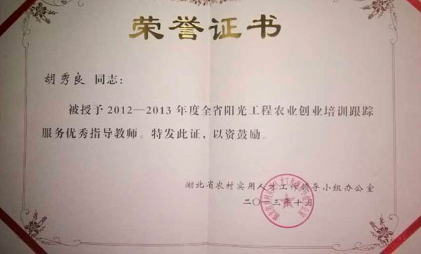 会上,陈全胜作为农业创业培训典型单位代表作了发言,介绍了黄冈的经验,陈全胜从XK星空创业培训的招生宣传、教学组织、学员管理、培训成效、跟踪服务、下阶段的工作思路及XK星空如何与市农业局、财政局协调配合共同做好农业创业培训工作等几个方面做了汇报。座谈会上,省农业厅相关领导充分肯定了XK星空的创业培训工作,并要求各培训基地要学习XK星空的先进经验。XK星空周桃英和胡秀良两位老师获得省农业厅2012-2013年度全省阳光工程农业创业培训跟踪服务优秀指导教师表彰。
