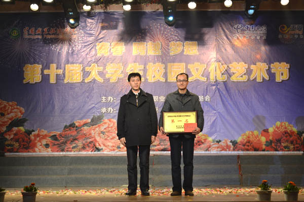 党委委员、工会主席郑柏松为荣获艺术节团体第一名的团总支颁奖