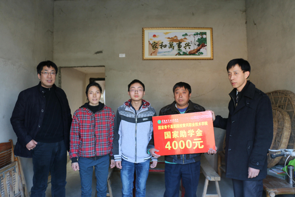 12月13日上午,校党委委员、工会主席郑柏松,带领电子信息学院党总支书记朱建军、学工处副处长陈胜红、党总支副书记程朗以及部分辅导员老师,到英山县金家铺镇黄林村吴楚同学家走访,为他们送去4000元国家助学金和米、面、油等慰问品,使学生及家长深切地感受到党和政府的温暖以及学校对贫困生的关怀。