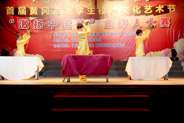 本次活动在传统的白瓷盖碗茶表演中开始,表演者给每位老师奉上一杯芬芳四溢的清茶,老师们沉醉在茶香中的同时,也领略了中国传统茶道文化散发的独特魅力。每位兄弟社团嘉宾也拿到了一杯泡好的铁观音,大家边品茶,边欣赏表演,真正把品茗的含义发挥出来,使茶文化在每一位嘉宾心中间流转。古典的韵味和精彩的表演赢得了在场观众的阵阵喝彩。接下来的节目紫砂盖碗茶表演也饱含着中国茶道的独特魅力,表演者轻柔优美的动作,使在场观众沉醉其中。每一个节目都倾注了演员的辛勤付出,更呈现了传统文化的韵味。观众们最期待的台下 “有奖竞猜”开始了。丰厚的奖品,有趣的问答,得到了观众的积极参与,把本次活动推向了高潮。而龙行十八式的闪亮登场使活动高潮迭起,亮丽的服装,精彩的表演,赢得了在场领导老师、学生的阵阵喝彩。最后第三届品茗会在一首《给未来的自己》歌曲中落下帷幕。