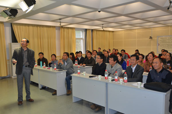 下午,宁波职院公共教学部主任叶鹏作了“今天我们如何做老师”的主题讲座。做什么样的老师,教给学生什么,我们应该怎么教等问题逐渐在讲座中展开。叶鹏还针对高职院校公共课教学中存在的问题,公共课的价值及课程教学改革等方面分别进行了交流与探讨。