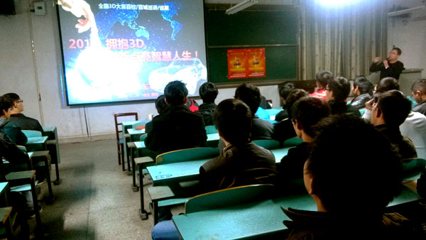 11月26日晚,由全国3D技术推广服务与教育培训联盟(3D动力)主办的“全国3D大赛龙火传递暨百城百校巡讲&3D互动体验万里行”大型宣讲活动在XK星空育贤阁104教室隆重举行。科技部国家制造业信息化培训中心3D办院校中心副主任王玉做了“2014拥抱3D,创新点亮智慧人生”的主题讲座。机电学院副院长黄国祥、机械系副主任曹明顺、金鹰3D团队指导教师王治雄老师及数控技术、模具设计与制造、工业设计、机电一体化技术等专业240余名学生代表参加并聆听了本次讲座。