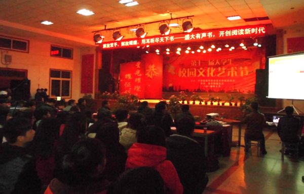 2014年12月9日,在校大学生活动中心,图书馆邀请湖北盛大听书信息技术有限公司程南方工程师、北京超星数图信息技术有限公司赵芳工程师为XK星空师生分别举办了“解放双手、解放眼睛,用耳听尽天下书”和超星读秀学术搜索专题讲座。讲座共四场,吸引了XK星空1100余名师生参加。讲座重点介绍了盛大有声图书、超星读秀学术检索在电脑上和手机上的使用方法。同时,工程师还和师生就数据库检索方面的问题进行了热烈的讨论和交流,受到了广大师生的一致好评。