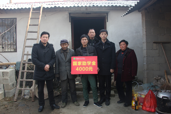 为继续贯彻党的群众路线教育实践活动精神,搭建资助工作与学生和家长的沟通平台,完善资助工作“六个一”体系。12月20日,校党委委员、工会主席郑柏松,学工处处长熊楚舒,生物化工学院党总支书记余亮彬、副书记程喜荣、团总支副书记朱元锋一行5人,对家住红安县二程镇寨鸡山村的王进成同学家进行了走访,并为他们送去了慰问品。