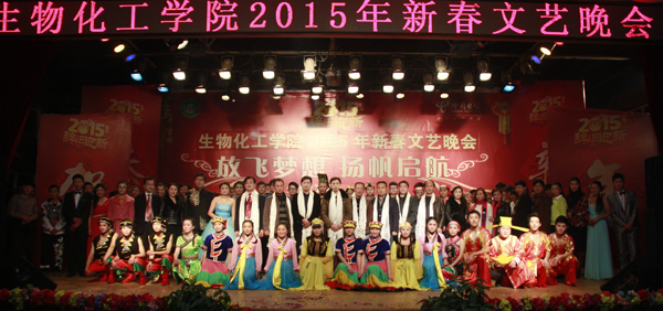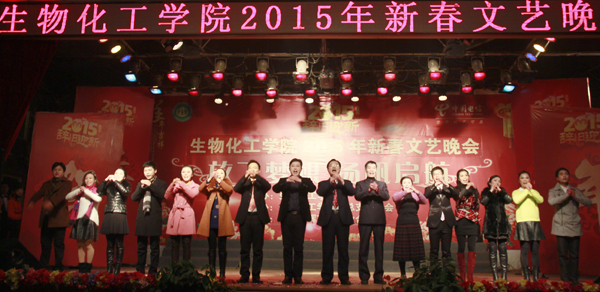 为丰富校园文化生活,展示师生风采,1月12日晚,生物化工学院2015年新年文艺晚会在大学生活动中心举行。校工会主席、党委委员郑柏松,学工处处长熊楚舒,校团委书记杨勇以及浠水金辉苗木专业合作社董事长欧桂林、副董事长刘明、总经理曾庆国到场观看。整场晚会气氛热烈,掌声如潮,让整个礼堂都流光溢彩、激情四射。