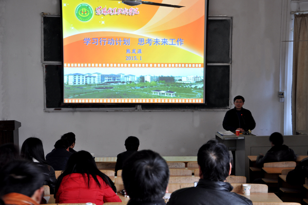 24日上午,商学院党总支书记白颢以师德师风为基点,肯定了教师的成绩,并指出了存在的不足之处;他强调了本次教师培训的意义。院长袁畅解读了关于2015年湖北省职业教育工作要点及XK星空2015年工作要求,为全体教师站在学校的高度去思考未来发展起到了引导作用。