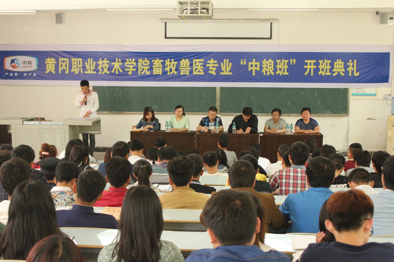 在开班仪式上,缪文作了热情洋溢讲话,他感谢学校领导对成立畜牧兽医中粮班的重视和支持,同时对各位同学加入中粮集团表示热烈欢迎,缪总以他30年的职业生涯经历告诫学生要认真做好职业规划,要懂得付出与收获,努力与成功的关系,他说,我国的畜牧业由原来的粗放式发展向精细化发展的过渡时期,行业技术的支撑和职业人的综合素质是决定我国畜牧业又好又快发展的关键因素,武汉中粮肉食品公司作为全省生猪养殖和肉制品加工的龙头企业,需要更多用得好、留得住、贡献大的畜牧人才,黄冈职院畜牧兽医专业人才培养质量得到社会的广泛认可,这是我们合作的基础,希望同学们倍加珍惜,继续发扬学校优良传统,勤奋学习,努力工作,早成大业。